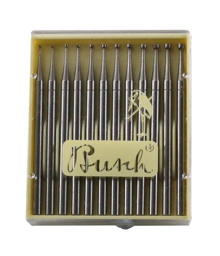 All burs have a standard shank diameter of 2.32mm, which fit Jewellery Industry standard handpieces. These burs are supplied by Busch from Germany, who have been manufacturing their high quality burs since 1905 when Ernst and Otto Busch set up their dental bur factory Busch & Co. The recommended speed is marked on each packet. Burs are sold individually, in packs of 6 or boxes of 72.
