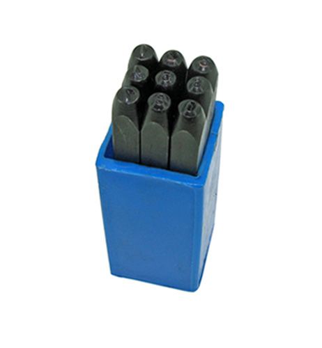 Economy A to Z plus & symbol and number 0 to 8 set of 36 hallmark punches. Straight stamp style.