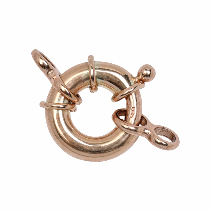 A great clasp to use on pearl or beaded necklaces or bracelets. The deluxe heavy bolt ring comes with a pair figure 8 jump rings to join up to the ends of your stringing or even custom chain, the choice is yours.