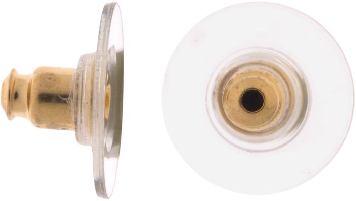 Choose from our mixed pack of these plastic earring backs or bulk pack of either silver or gold colour. The bullet shaped back contains silicon/rubber inside to hold your earring posts and have a 12mm diameter plastic base to give you plenty of hold against the back of the ear.