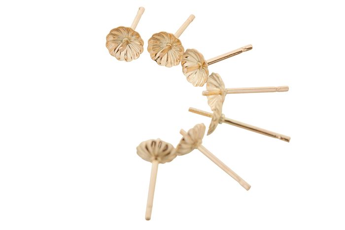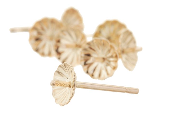 This model of pearl stud earrings come with fluted patterned cups in diameters: 3mm, 4mm, 5mm, 6mm & 8mm. We recommend selecting a cup diameter about 2 mm smaller than the pearl.