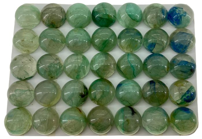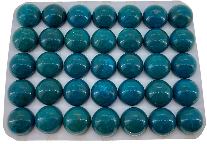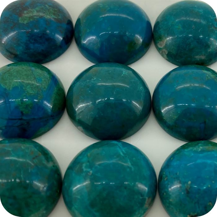 These round cabochons highlight the stone’ s rich green tones and subtle marbling, perfect for pendants, statement rings, bead caps, wire-wrapped designs or artisanal collections.