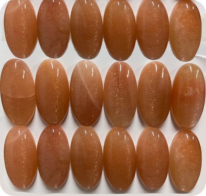 Goldsand Sunstone is admired for its warm, shimmering appearance created by tiny reflective inclusions that give each cabochon a natural, sparkling glow. This man-made gemstone is crafted to mimic the spangled look of natural sunstone, offering jewellers a consistent, affordable and eye-catching alternative for a wide range of designs.