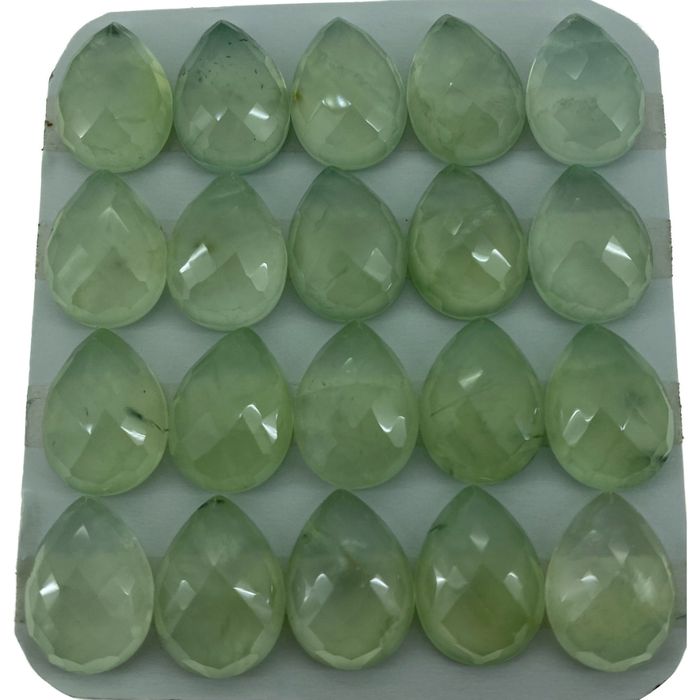 Prehnite is a translucent to transparent gem-quality hydrated calcium aluminum silicate. Until recently, prehnite was a rare collector's gemstone, but new deposits have now made it more readily available.Its color is usually a soft apple-green, which is quite unique to prehnite. *please note all stones are sold separately, and not as a card.