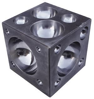 13-343-000-D : The 70mm by 70mm dapping block includes 26 half spheres ranging in size from 3mm right up to 52mm (3, 4, 5, 6, 7, 8, 9, 10, 11, 12, 13, 14, 15, 16, 17, 19, 21, 23, 25, 27, 30, 34, 38, 42, 47, 52mm). The dapping block weighs in at 1.5kg.