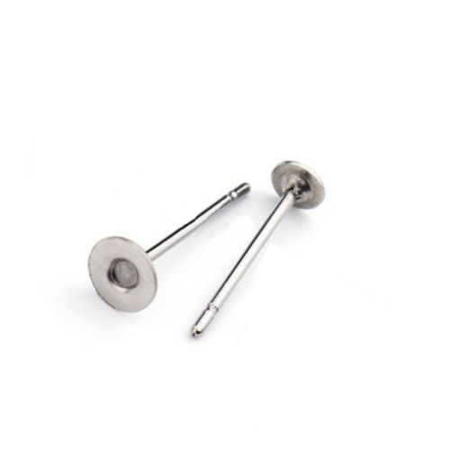 Disc earring stud - Silver plated 6mm (10 pairs)