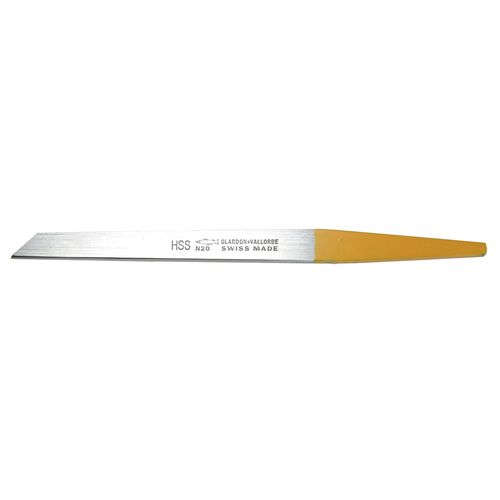 Finest Swiss quality carbon steel gravers suitable for use with all types of metals, wood, bone, ivory & onyx. For use by Diesinkers, Engravers, Jewellers, Setters and Watchmakers. Special High Speed Steel gravers (HSS), (identified by yellow paint on tang). HSS gravers keep a sharper cutting edge 4 to 5 times longer than carbon steel gravers, but they are more difficult to sharpen. All gravers made by Vallorbe in Switzerland.