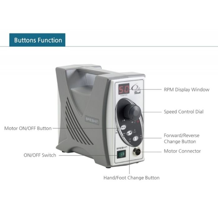 The OZ Black Brushless Micro Motor is quiet, cool running, low maintenance and with an amazing 50% more torque than an average Flexible Shaft Handpiece (Faro 4.9Ncm) will deliver all the power you need. Loads of torque combined with a quick change bur release and well balanced motor provides the perfect tool for intricate hand makes or cleaning up castings.