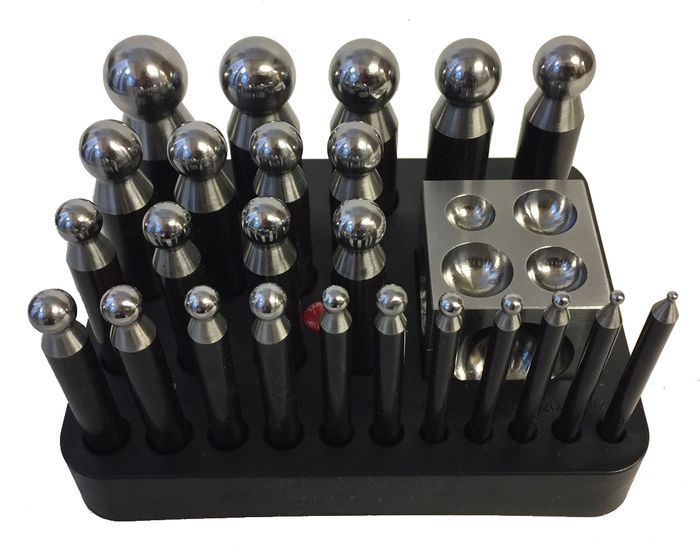 ● Set of 24 Punches in sizes: 2.3, 3.5, 4.3, 5.1, 5.9, 6.7, 7.5, 8.3, 9.1, 9.9, 10.7, 11.5, 12.3, 13.0, 13.8, 14.8, 15.4, 16.2, 17.0, 18.6, 20.2, 21.8, 23.4 & 25.0mm.