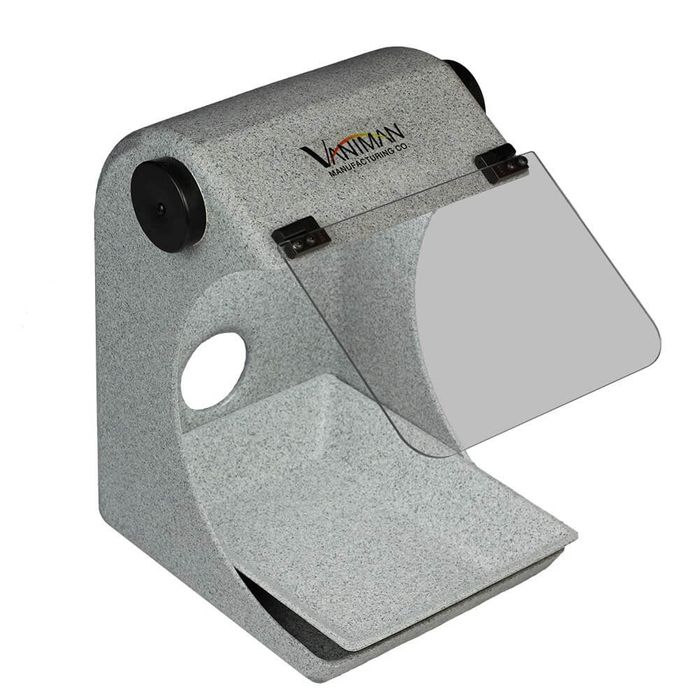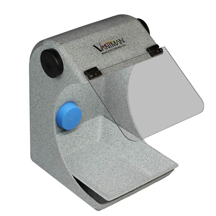 The Splash Hood is a durable dust collection accessory designed to fit a 6″ wheel. It features a protective shield, removable dust tray, and bright LED lighting. It is excellent for polishing stations and even good for capturing super fine dust such as Zirconia.