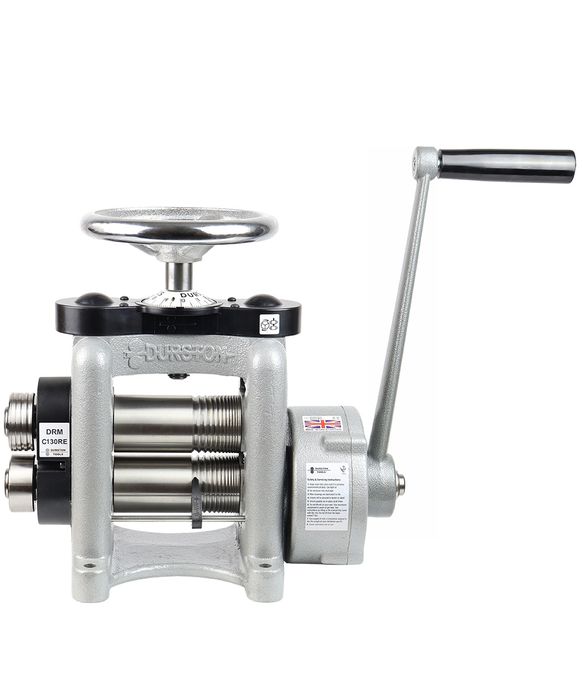 These are our best selling machines for the professional Jeweller, robustly built, fitted with self-lubricating bearings guaranteed for life and steel bearing housings. All drive gears are made from gear steel and are heat treated for maximum strength & long life. New - protective covers over the adjusting gears leaves the calibrated discs open for easy viewing while reducing the risk of catching clothing... or body parts! Also included is Durston's new, highly efficient gear box with a large reduction of 5:1. Very useful for the tougher applications or for when you need that extra help in rolling.