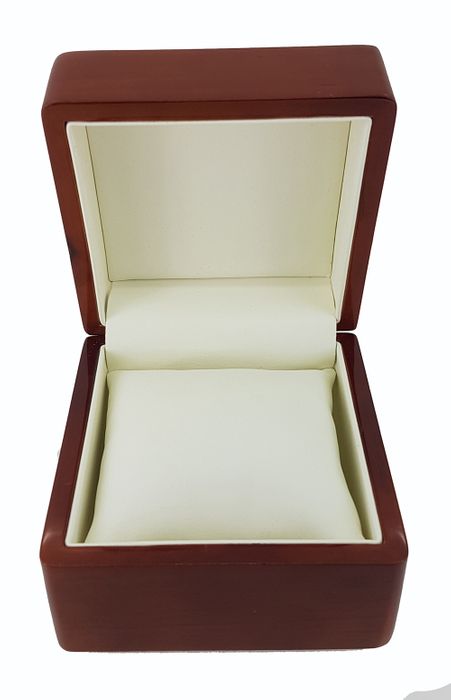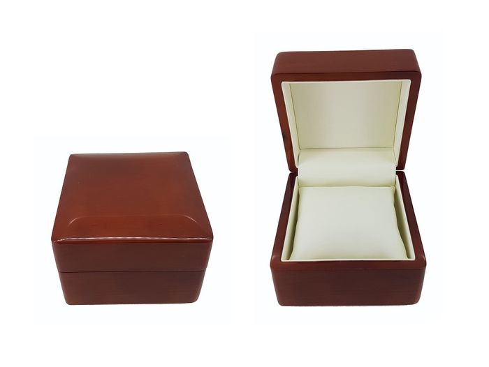 These single watch boxes have a highly polished dark borwn timber exterior with press button locking latch. The interior is cream leatherette with a removable support cushion for your watch.