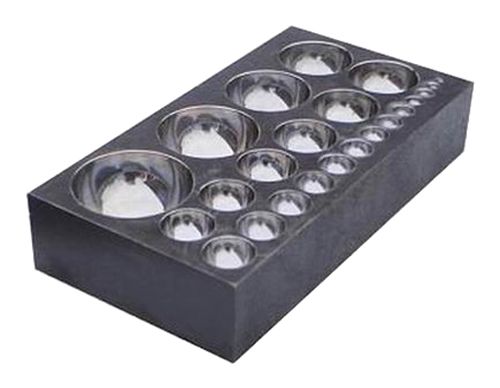 23 depressions. All depressions are on top surface. Used with punches to make hemispheres.