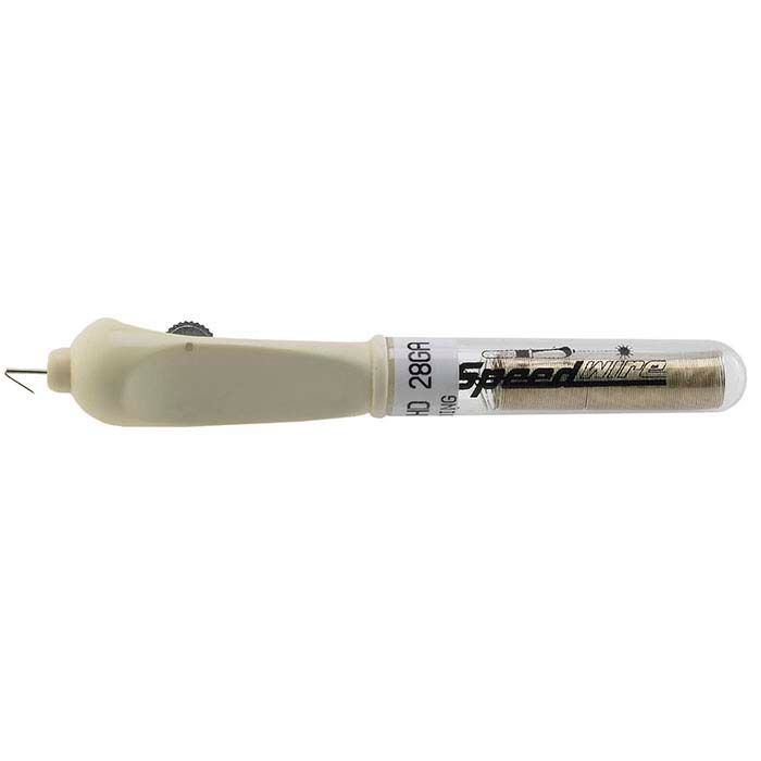Ideal for laser-welding applications, this innovative pen-style Speedwire dispenser comes pre-loaded with 10 feet of hard, 0.37mm silver solder wire (non-refillable). The sturdy plastic body is contoured for precise control. A fingertip roller allows you to control the wire feed, smoothly drawing wire from a see-through reservoir compartment at the back of the pen. The wire emerges from a stainless steel guide tube that allows you to manipulate the wire from as close to your workpiece as 2mm, significantly improving the precision of your positioning. Guide the wire without taking your eyes off the work. You save time and improve the accuracy of your welds.