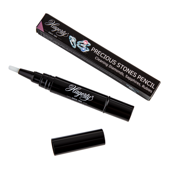The pencil is filled with an exclusive highly-effective Hagerty formula with active ingredients, that penetrate and dissolve dirt on precious stones. The cleaning gel contains specific polishing agents and cleansers that bring back the luster.