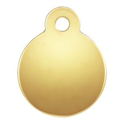 5mm diameter blank in 14ct yellow gold filled with an eyelet offset to give more space on a small piece to place your design. The eyelet has a hole diameter of 0.8mm and the piece is 0.45mm thick.