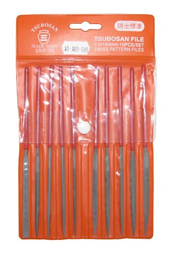 10 piece set contains one each of Pillar, Half-round, Round, Three Square, Square, Warding, Crossing, Oval, Barrette & Knife.