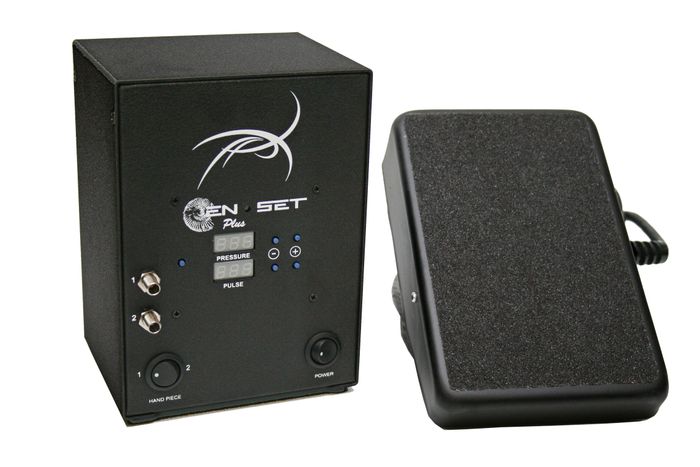 Innovative pneumatic power control systems, digitally operated; for engravers, jewellers, stone setters and hobbyists. Its patent pending technology allows users to operate gravers, chisels, hammer tips, beading tools files and others, offering great power and control due to its wide adjustment capacity. Setting stones, hammering or hand engraving is faster and safer using this machine. Suitable for use with many different hardness materials such as copper, silver, gold, steel and titanium.