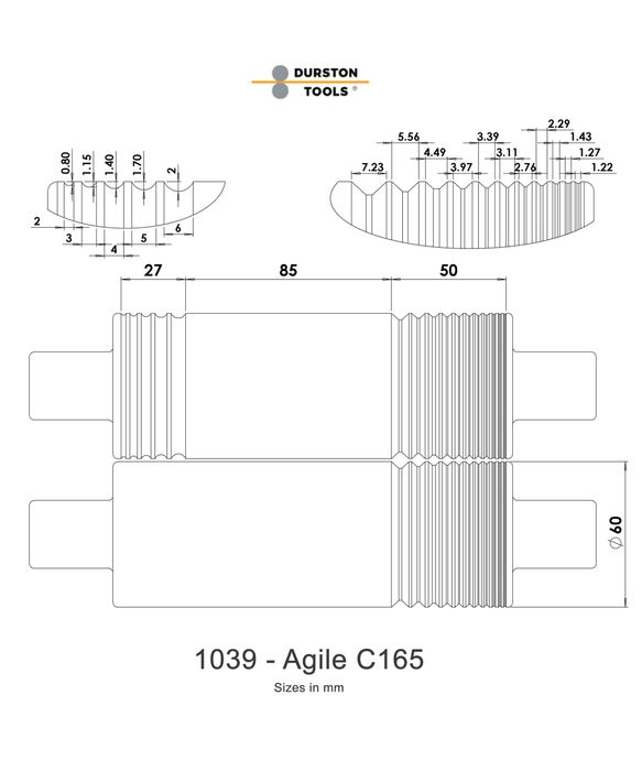 Durston’ s massive capacity Agile C165 continues the Durston tradition of super strong design to support each load effortlessly, with no compromise on quality. You’ ll find 5 half-rounds as part of the main roller with a huge 85mm flat area and 11 square grooves. The Agile C165 matches the rest of the Durston range with rolls that are specially induction hardened to 64 RC and the main barrel to a depth of 6mm, giving you a lifetime of service. Durstons are proud to manufacture all our rolling mills in-house to ensure strict quality control. We machine, harden and grind the rolls in our High Wycombe factory. The bearing blocks are fully supported, self-lubricating and completely maintenance-free - giving the best possible rolled finish. Durston’ s unrivalled five-to-one gearbox makes for easy turning, while behind the cover, you’ ll find two specially formed gears to make rolling even smoother. Safety features include a protective guard around the top gears. The Agile C165 Rolling Mill - part of Durston’ s award-winning range of products, available since 1961.