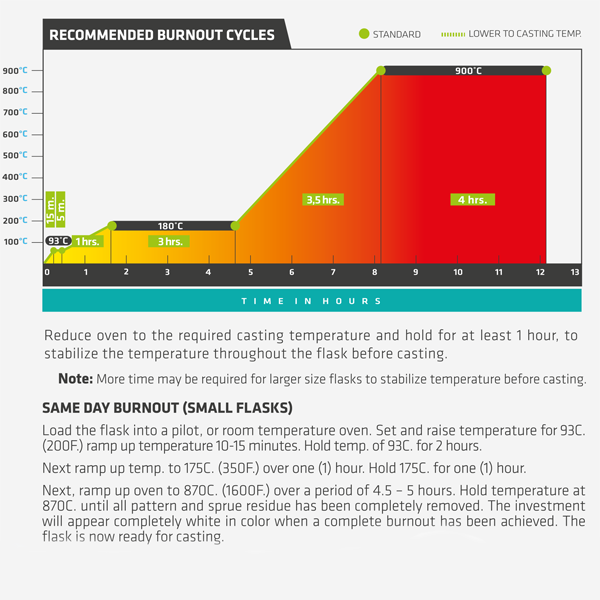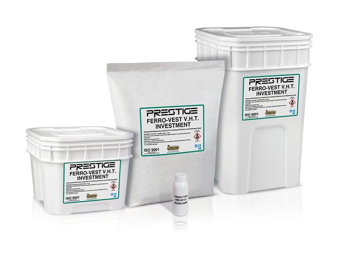 FERRO-VEST VHT is a superior two-part, high temperature investment developed to give premium results casting platinum, palladium & stainless streel alloys and metals that melt in excess of 1500°C. - 2732°C. Ferro-Vest VHT investment powder supplies superior, consistent results and unlike other two-part high temperature investments on the market, comes complete with special proprietary additives that eliminate air bubbles and will provide a far smoother cast surface that requires less finishing than with other brands.
