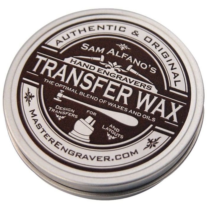 Sam Alfano’ s Transfer Wax is his own blend of pure beeswax, mutton tallow, emu oil, and other oils and waxes. Sam has used it daily for layouts, replicating, and reversing engraved designs.