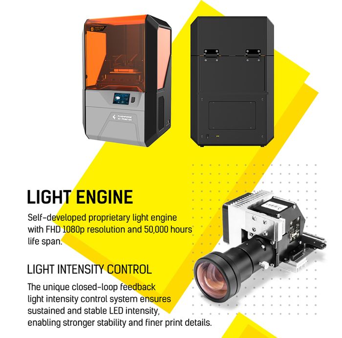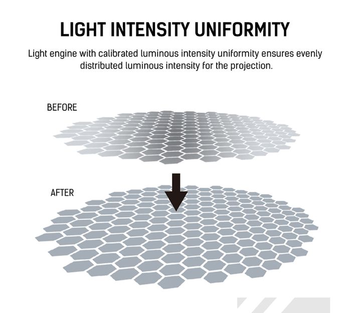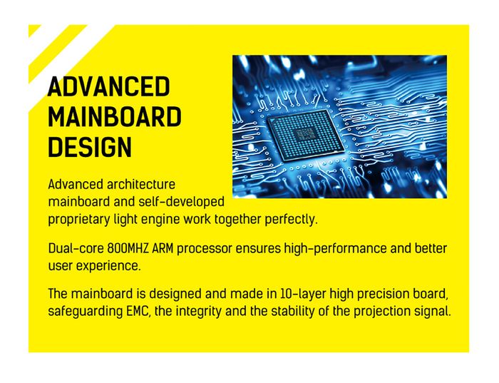 Uses a proprietary light engine with a FHD 1080p resolution and a 50,000 hour lifespan.