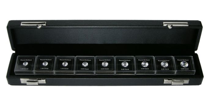 Set of 9 round brilliant cut diamonds from 1.25carat to 5.0carats.