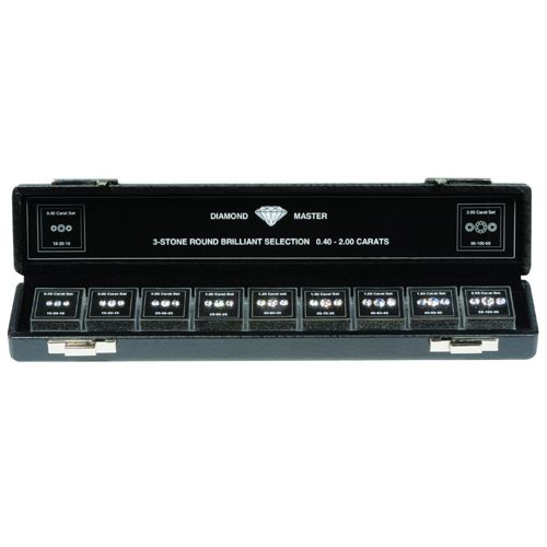 Set of 9, 3 stone ring layouts in round brilliant cut up to 2.0carats.