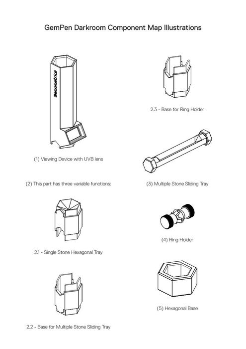 GemPenĀ® Darkroom allows the professional user to create a portable environment, making it easier to more accurately interpret results. This complimentary tool contains a UVB protective filter viewing lens to better observe fluorescence and phosphorescence effects in natural, synthetic and treated gemstones. The Darkroom allows the user to work hands-free with their GemPenĀ® and has three variable functions: screening single stones, multiple stones and rings.