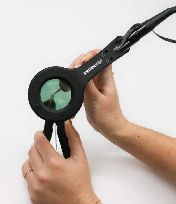 We’ re thrilled to introduce our newest innovation for the permanent jewelry industry: The Sunstone eclips, a state-of-the-art auto-darkening lens (ADL) that slides right onto a welding stylus.